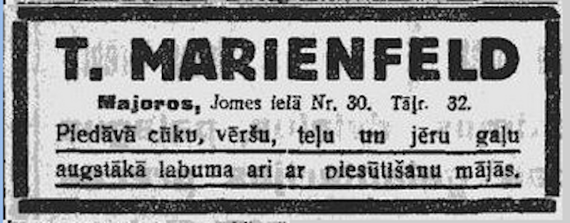 Kā 1984. gadā stāstīja Majoros dzīvojošais Voldemārs Rozītis, 30. gados Marienfelds bijis Majoru tirgus pārzinis. Tirgus laukumu viņš īrējis no pilsētas valdes. Ikvienam, kas vēlējās ierīkot savu tirgus leti un tirgoties, vajadzēja iemaksāt tirgus naudu[1].