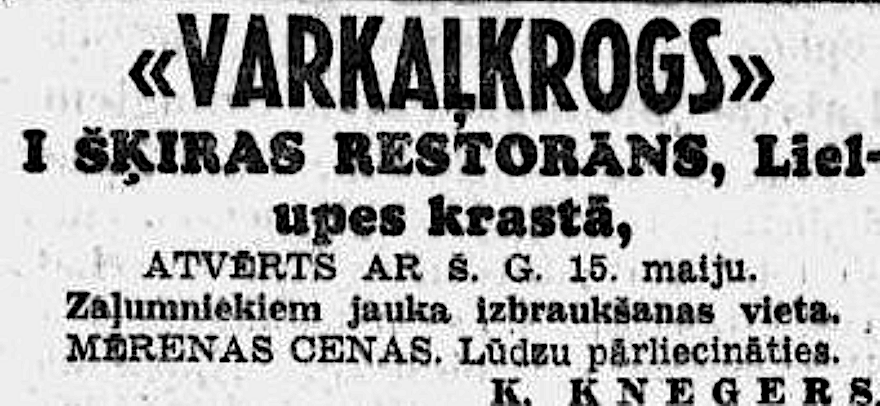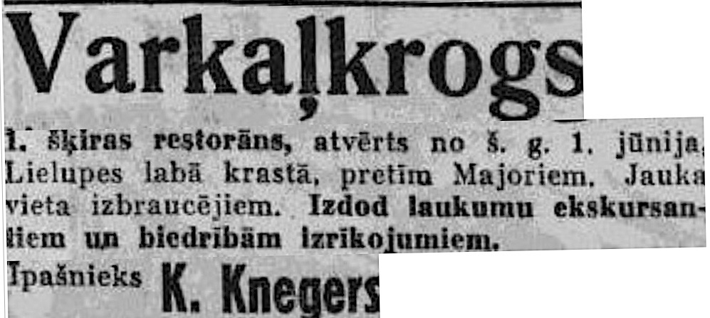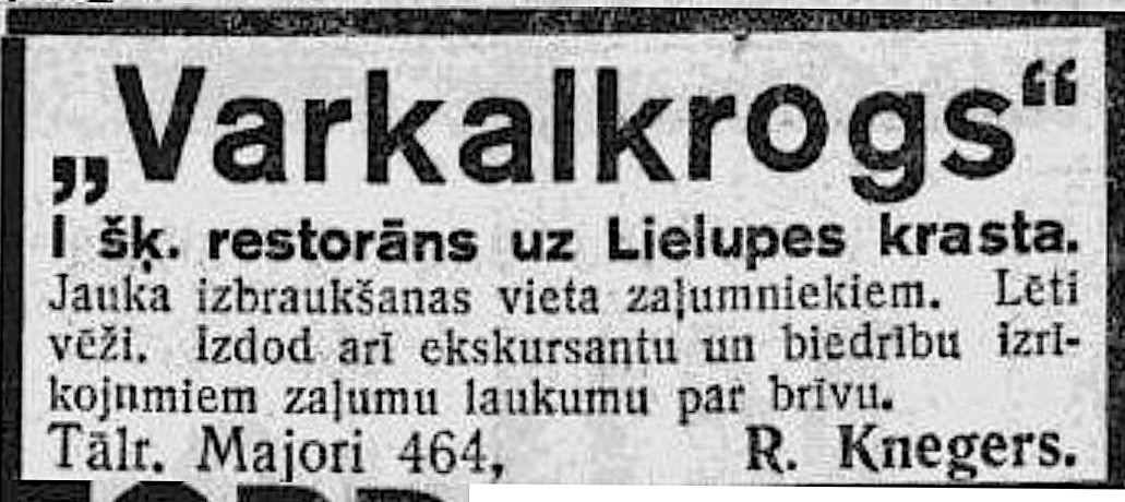 Restorāns "Varkaļkrogs" vasaras sezonās darbojās līdz 2. pasaules karam. 1937. un 1938. gadā tā īpašnieks bija K. Knegers.