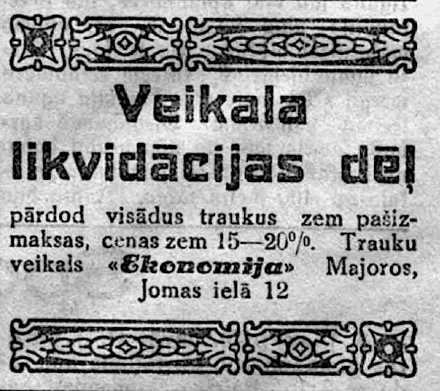 Līdz 1935. gadam ēkas adrese bija Jomas iela 12 un 1924. gadā te darbojās Bojarsky-Šleifera foto piederumu veikals, līdz 1931. gadam trauku veikals "Ekonomija", 1942. gadā frizētava.