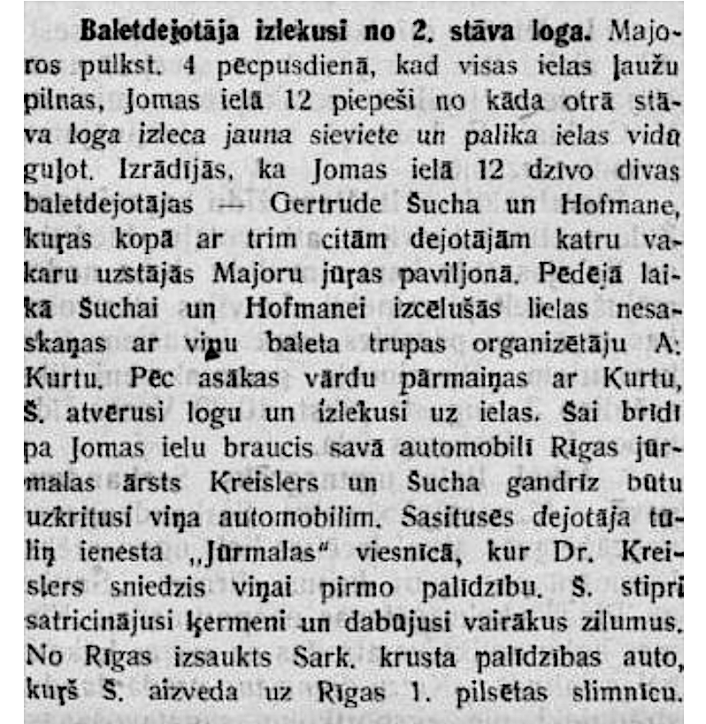 Otrajā stāvā bija ierīkoti dzīvokļi un te jāatzīmē kāds pašnāvības mēģinājums. 1930. gada 31. jūlijā četros pēcpusdienā baletdejotāja Gertrude Šuha izlēca pa otrā stāva logu. Tieši tobrīd pa Jomas ielu ar savu auto brauca dakteris Kreislers, kurš viņai sniedza pirmo palīdzību (sk. pielikumu).