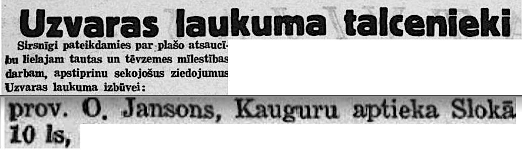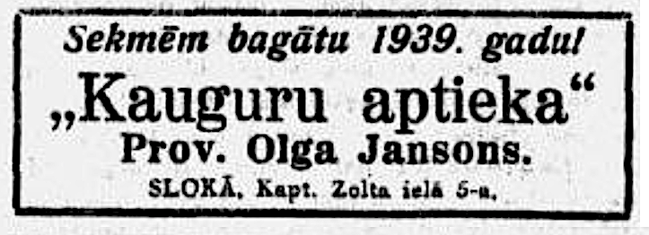 Kauguru aptiekas provizores Olgas Jansons māja, kura uzcelta 1932. gadā pēc izcilā latviešu arhitekta Eižena Laubes (1880-1967) projekta. Aptieka šajā ēkā darbojās vēl 20. gs. 70. gados.