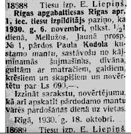 Līdz 1935. gadam adrese: Jaunais prospekts 1. Dzimtās mājas latviešu leģionāram Harijam Kodolam (1924-1945), kura piezīmes par dienestu latviešu leģiona 19. divīzijā un cīņām Austrumu un Kurzemes frontē no 1943. gada 17. aprīļa līdz 1945. gada 8 maijam izdotas grāmatā "Par Latviju: karavīra dienasgrāmata" (1992, 96. lpp.).