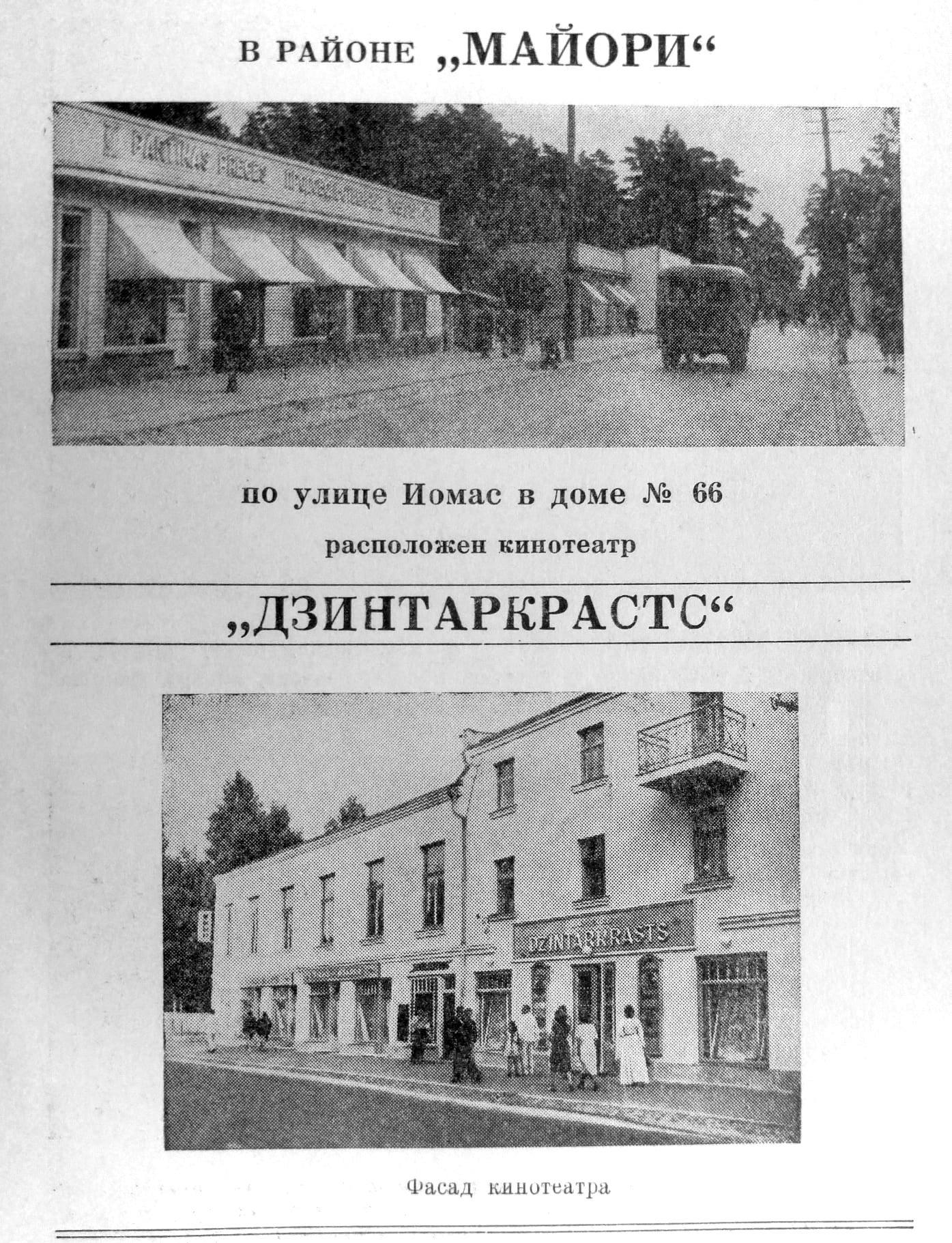 Majoros Jomas ielā 66 pirms kara darbojās kinoteātris "Eden". Pēc kara tas tika pārdēvēts par "Dzintarkrasts" un darbojās līdz jauna kinoteātra "Majori" uzcelšanai 1970.-gadu sākumā.